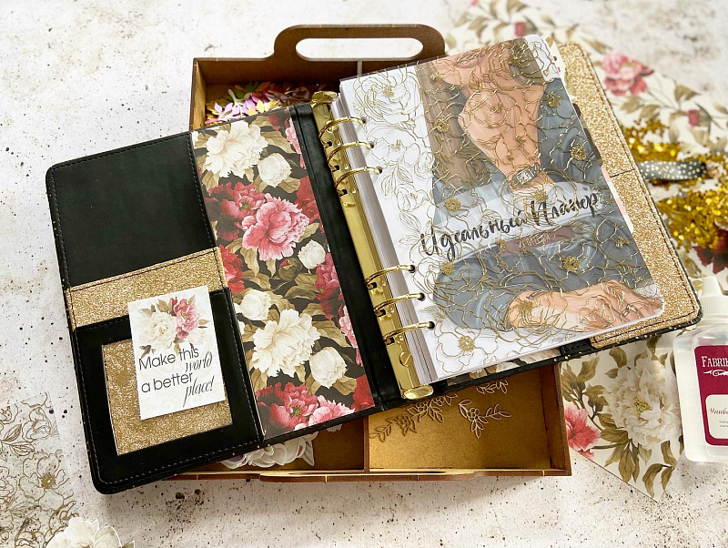 Теги: Peony passion, ацетатные листы с фольгированием, бумага Фабрика декору, кольцевой механизм, Марина Давиденко, мастер-класс, планер, своими руками