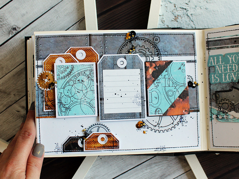 Теги: Grunge & Mechanics, бумага Фабрика Декору, вдохновение, заготовка для декорирования, мастер-класс, мужской альбом, скрапбукинг, ТМ Фабрика Декору