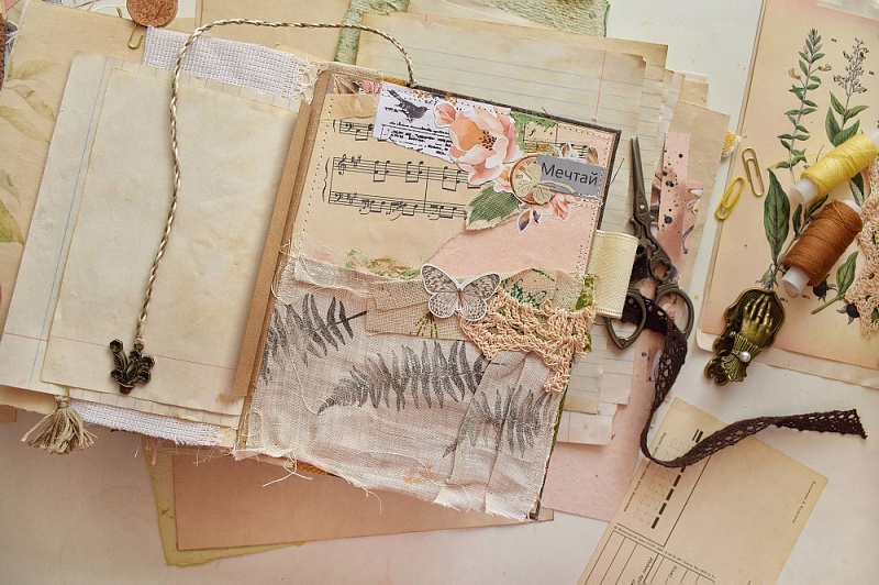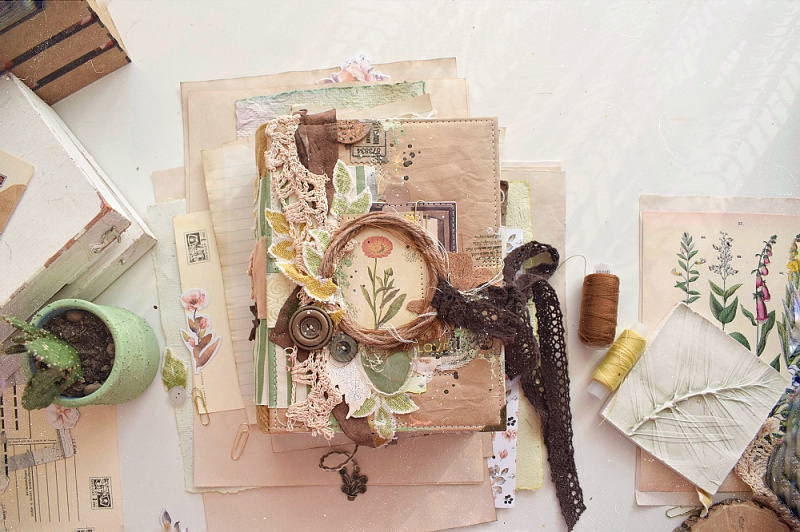 Теги: Botany summer, Sentimental Story, блокнот, блокнот своими руками, вдохновение, краски рустик, сухие краски, ТМ Фабрика Декору, шебби велюр