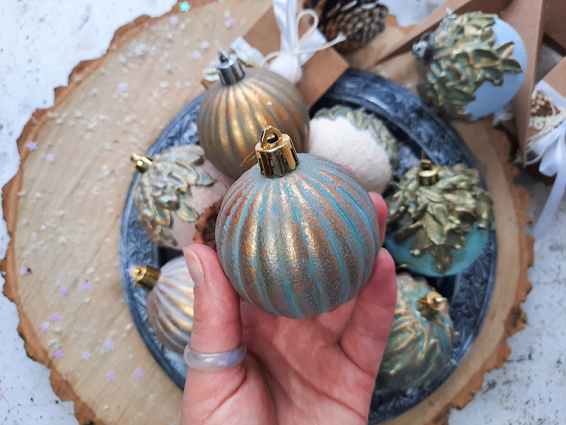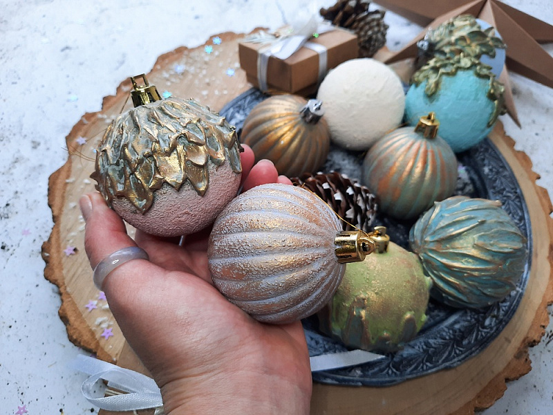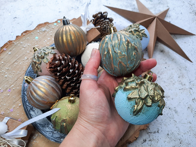 Теги: винтажный декор, деко акрил, металлики, новогодний декор, текстурная паста, шебби велюр
