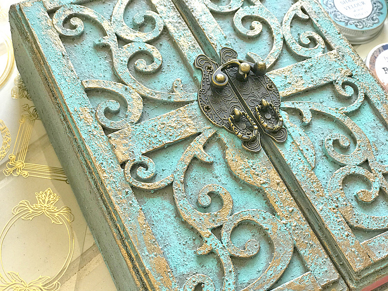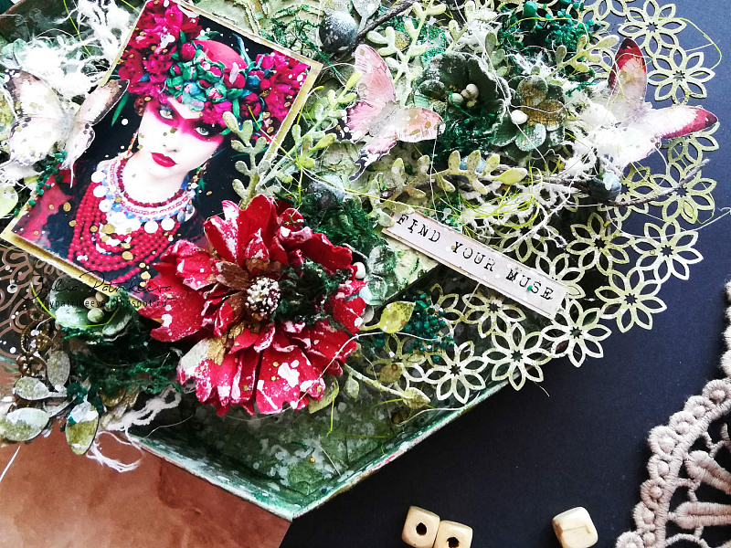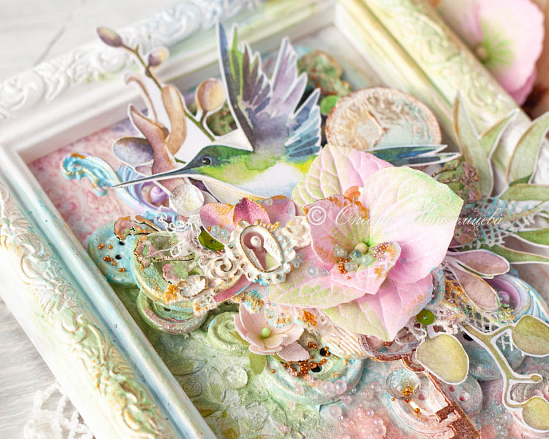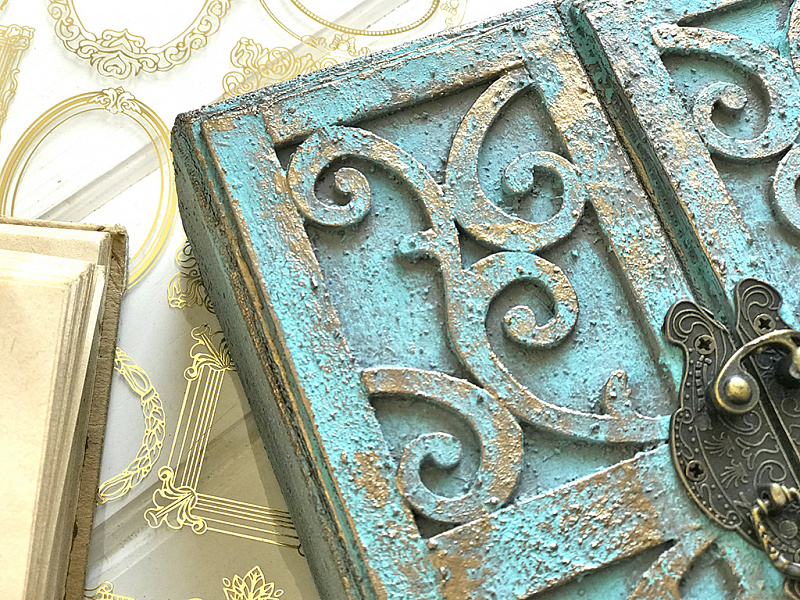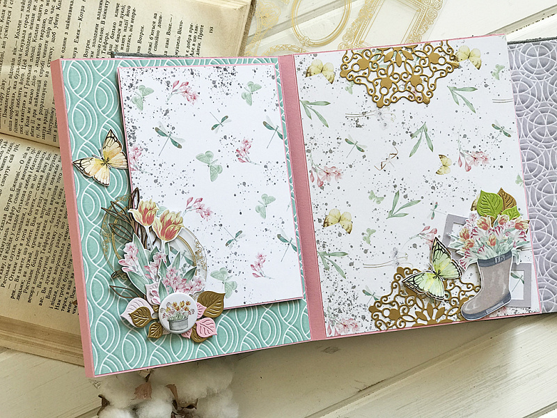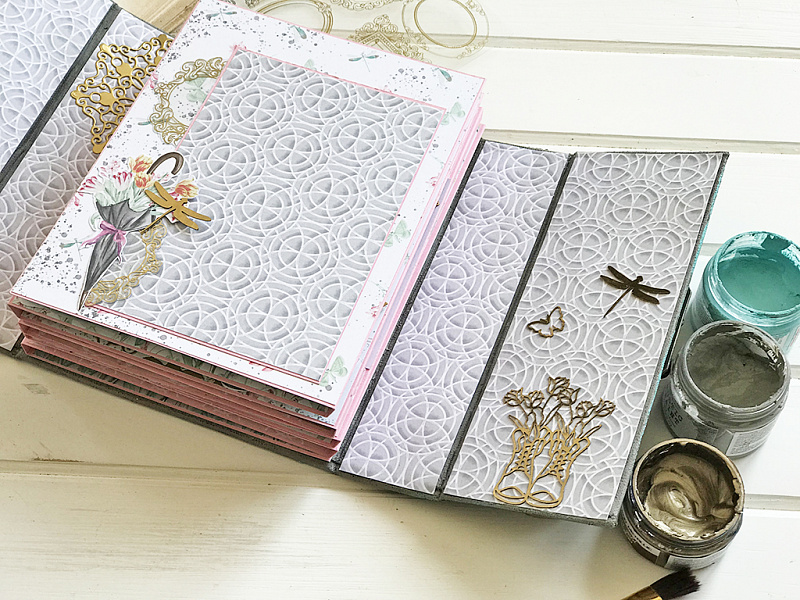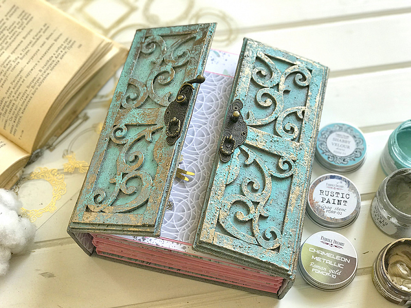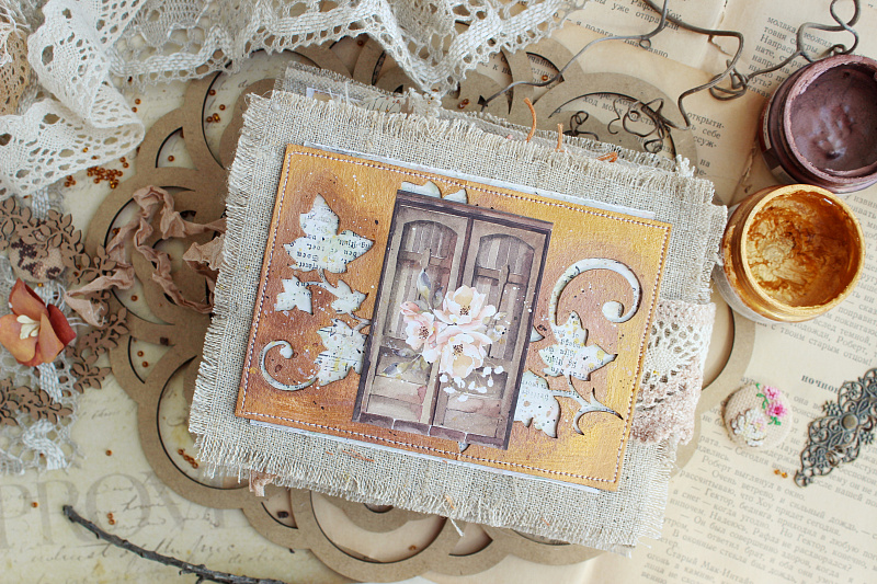 Теги: бумага для скрапбукинга, золотой чипборд, короб для альбома, открытка, открытка с цветами, открытка своими руками, текстурная краска, Тисевич Анастасия, ТМ Фабрика Декору, шебби велюр