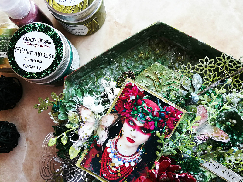 Теги: ацетатный лист, вдохновение, глиттерные муссы, мастер-класс, мусс металлик, спреи хамелеон, сухие краски с эффектами, текстурная паста, ТМ Фабрика Декору, трафарет, фольгирование, холст