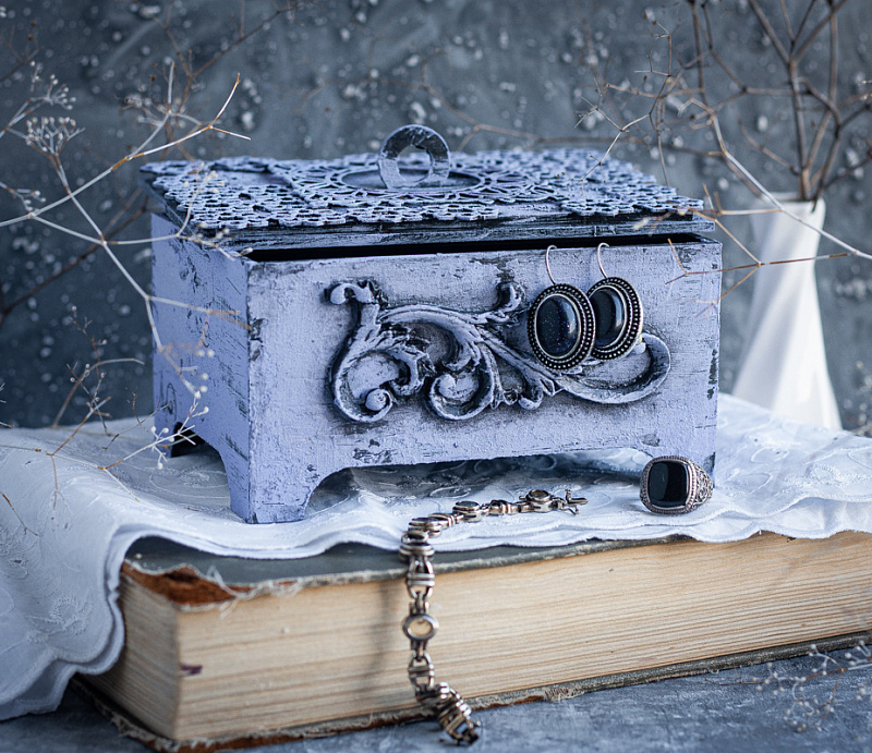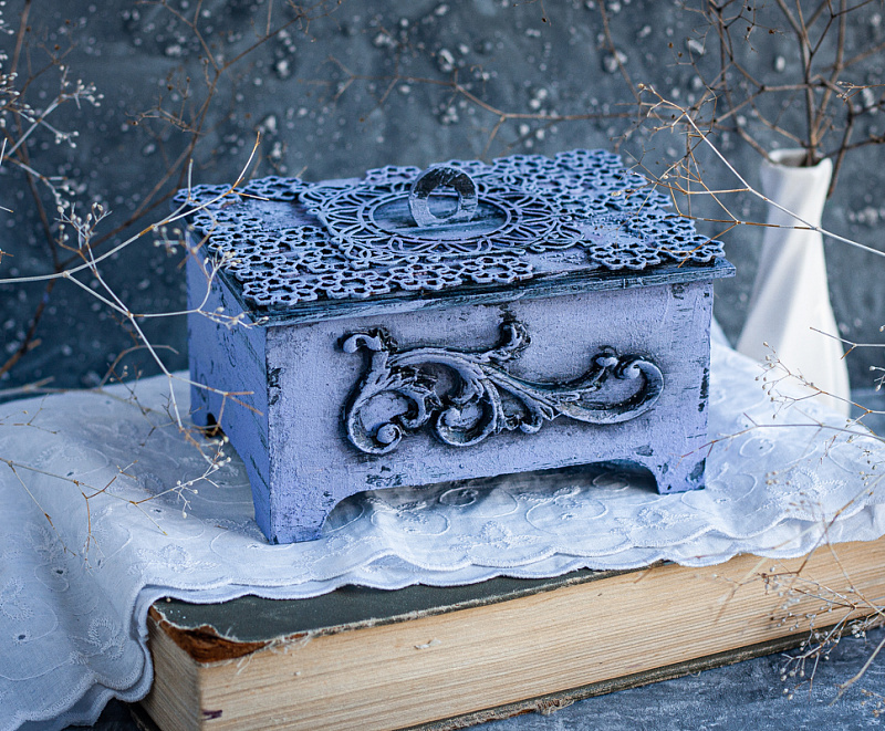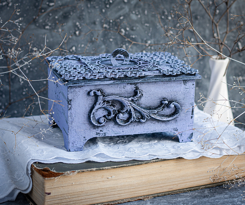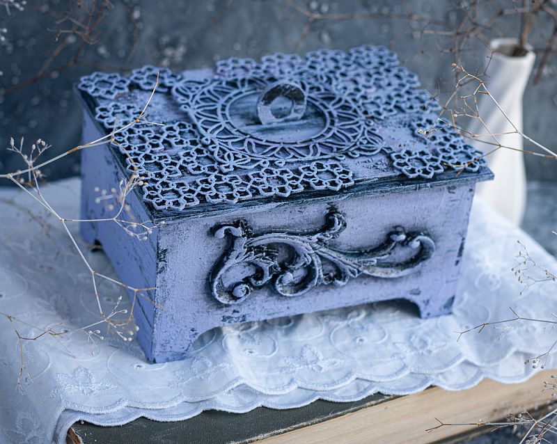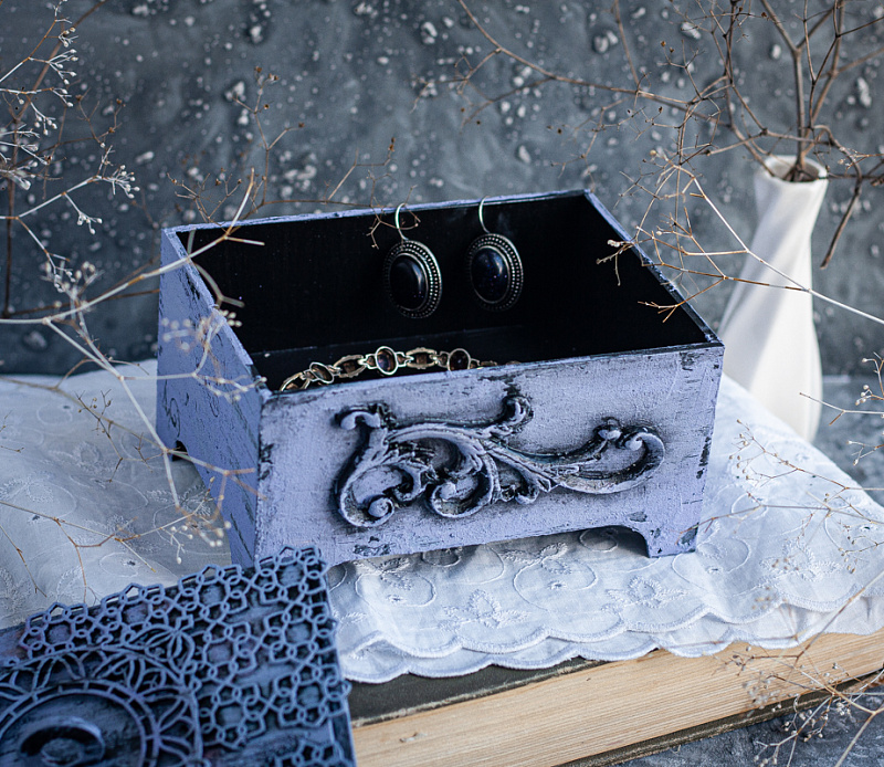 Теги: шкатулка, микс-медиа, шебби велюр, металлики