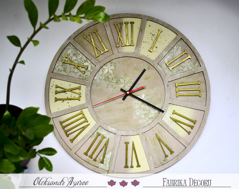 Всем привет! Сегодня с вами Александр Азаров и я хочу показать задекорированную заготовку-часы.  Часы я решил делать в постельных тонах и для этого я подобрал несколько цвето ...