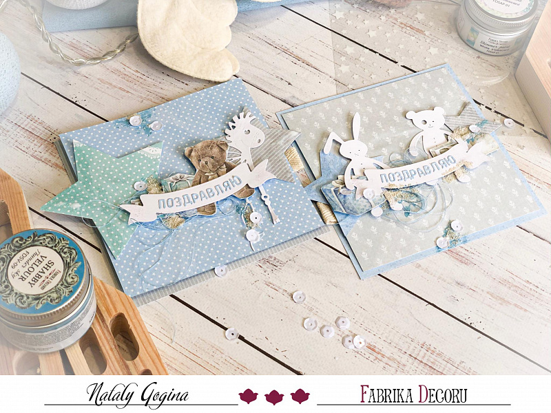 Всем привет,Сегодня с вами я - Наталия Гогина и хочу поделиться с вами процессом создания детских открыток используя новую коллекцию от Фабрики Декору "Shabby baby boy redesig ...