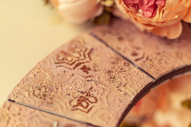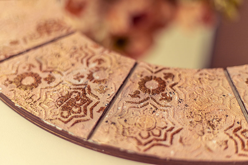 Теги: декор дома, декор интерьера, декоративный элемент, декорируем зеркало, заготовки из мдф, зеркало, зеркало своими руками, мастер-класс, микс-медиа, трафарет, фабрика декору