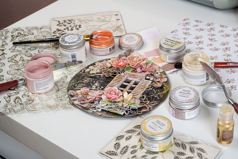 Всем привет! С вами Виолетта и сегодня я хочу показать красивое круглое панно, украшенное множеством цветов.Мне давно очень хотелось опробовать разные виды красок от Фабрики Декору ...