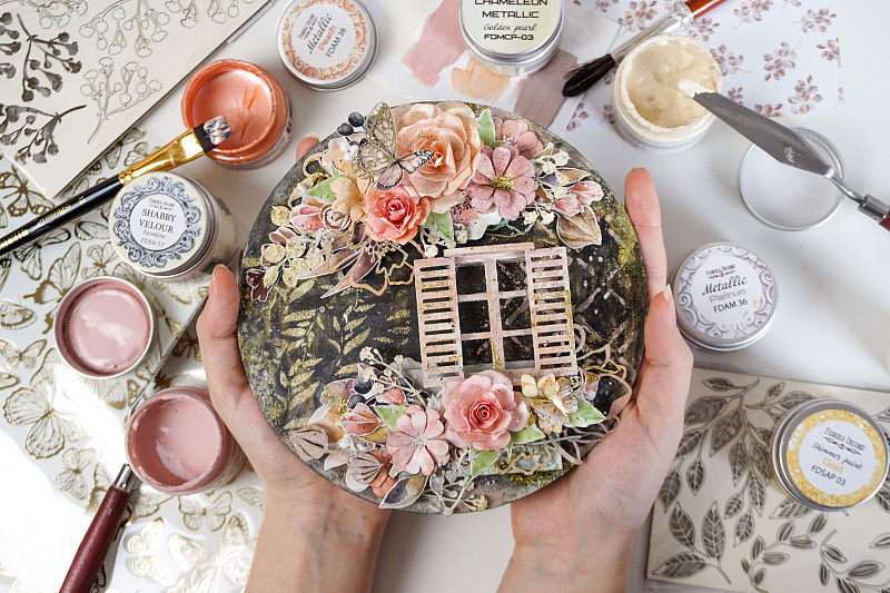 Теги: Sentimental Story, артборд, глиттерные краски, металлики, панно, рустик, своими руками, холст, цветочный, цветы, шебби велюр