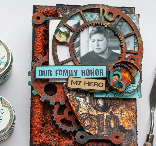 Короб для мужского альбома с имитацией ржавого металла.