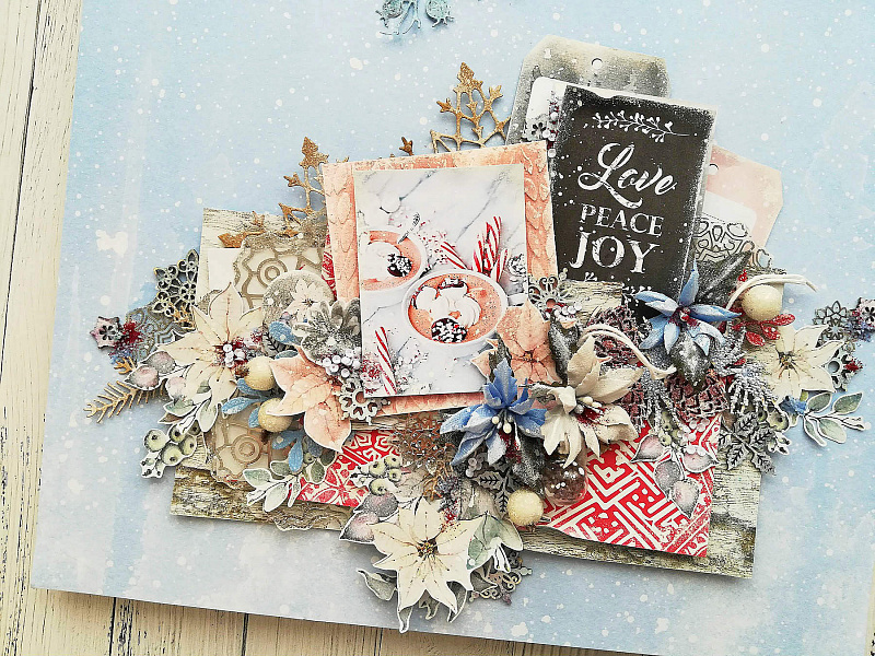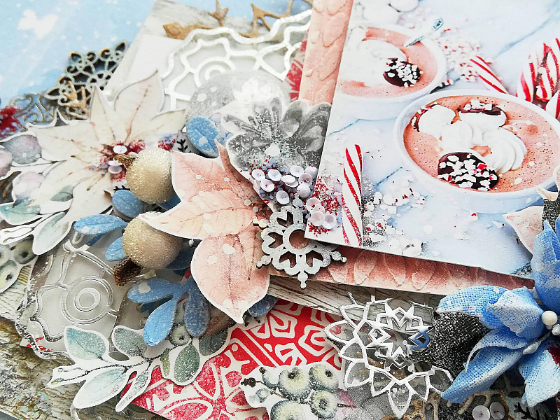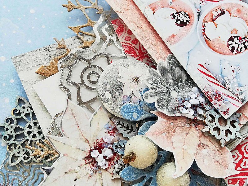 Теги: Christmas Fairytales, Winter Melody, ацетатные листы, кварцевый топпинг, страничка, сухие краски с эффектами, фольгирование, шебби велюр