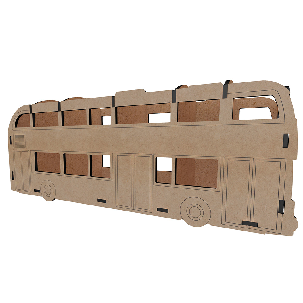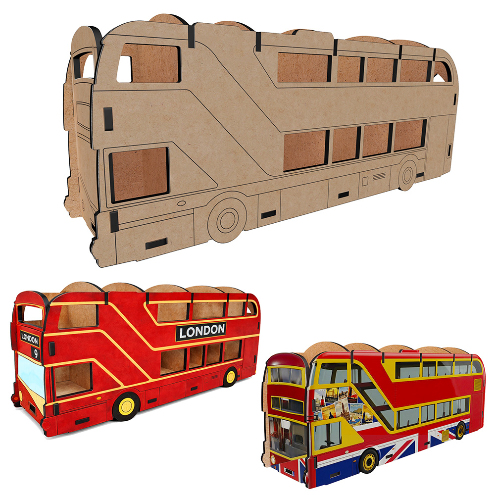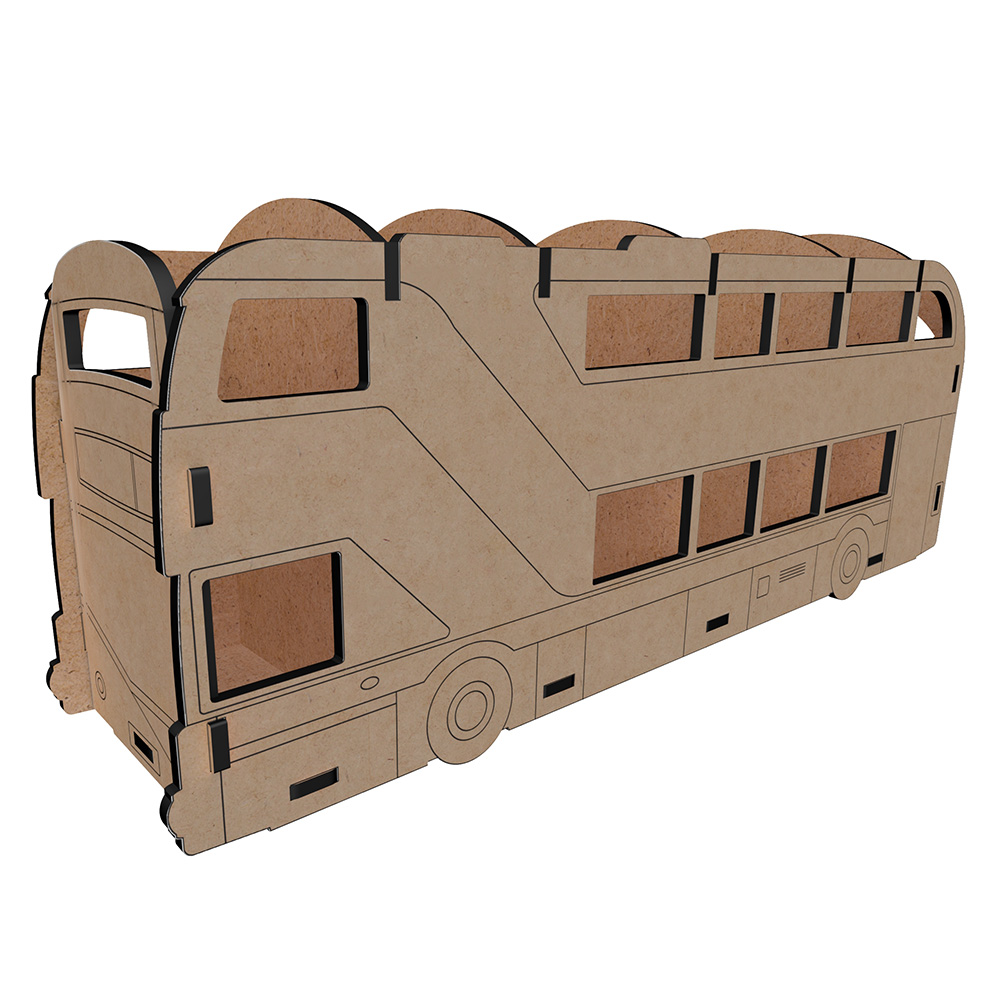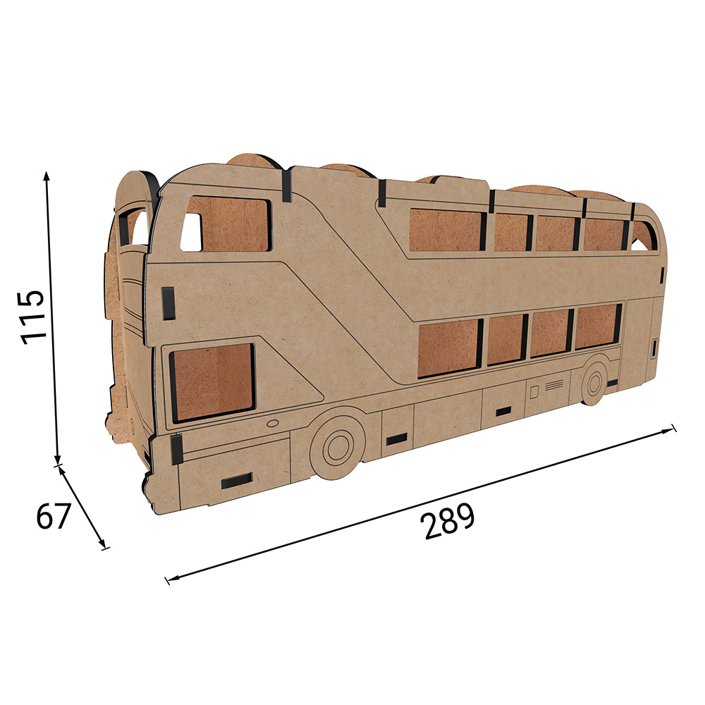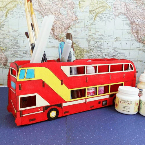 Оригинальный настольный органайзер-конструктор из ХДФ в форме двухэтажного автобуса — функциональное и декоративное решение для хранения карандашей, ручек, маркеров, кистей, ножниц и других канцелярских принадлежностей. Такой органайзер станет ярким акцентом рабочего стола дома, в детской комнате, учебном пространстве или творческой мастерской.