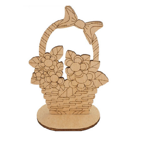 Фигурка для раскрашивания и декорирования, #528 "Корзинка на подствке" изготовлена методом лазерной резки. Предназначена для создания декоративных композиций, подвесных украшений, елочных игрушек, брошей и т.д. Может также использоваться в декупаже и росписи, для украшения мебели, создания объемных, многослойных картин или интерьерного декора.