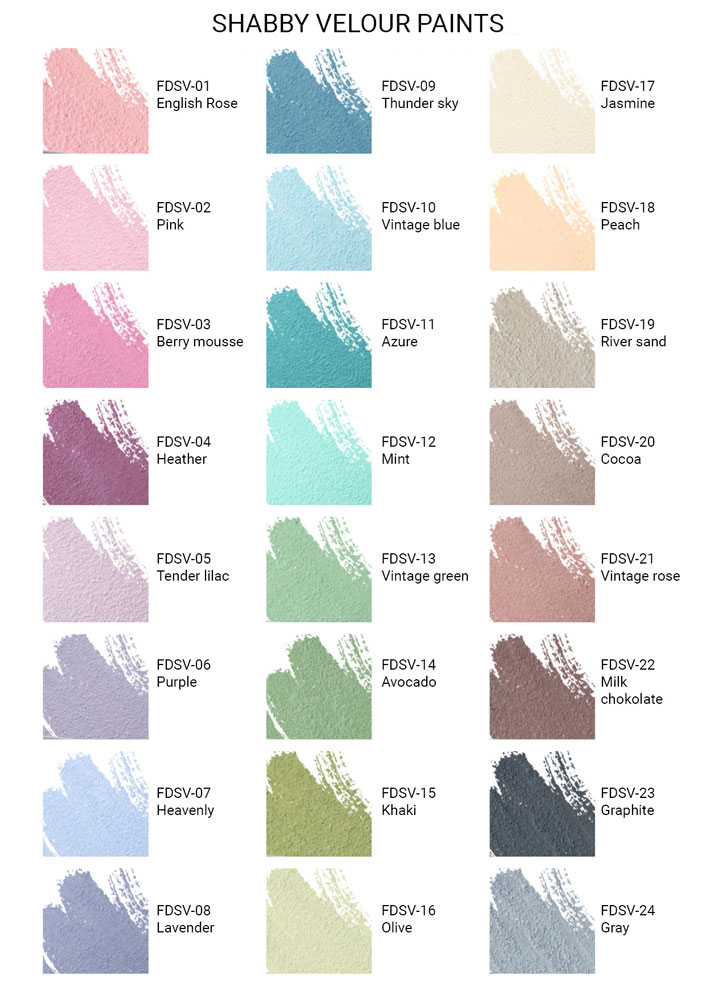 Краска шебби велюр Какао - акриловая краска на водной основе, ультра матовая с бархатным эффектом, специально разработана для техник “Винтаж”, “Шебби-шик” и легкого состаривания. Не требует предварительной подготовки поверхности грунтованием или ошкуриванием. Краска имеет превосходную адгезию к любым поверхностям, в том числе глянцевым. В качестве финишного покрытия после высыхания краски может использоваться матовый лак.