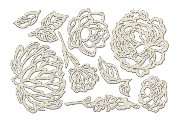 Набор чипбордов Цветы 1 10х15 см #033 — набор фигурок, изготовленных из очень плотного, двустороннего целлюлозного картона, размещенных на подложке размером 10см x 15см. Элементы изготовлены при помощи лазерной резки, края четкие, чистые. Чипборд может быть использован в его натуральном цвете, а может быть раскрашен аква чернилами, спреями, акриловой краской, пудрой для эмбоссинга, деко топингами или любыми другими материалами.