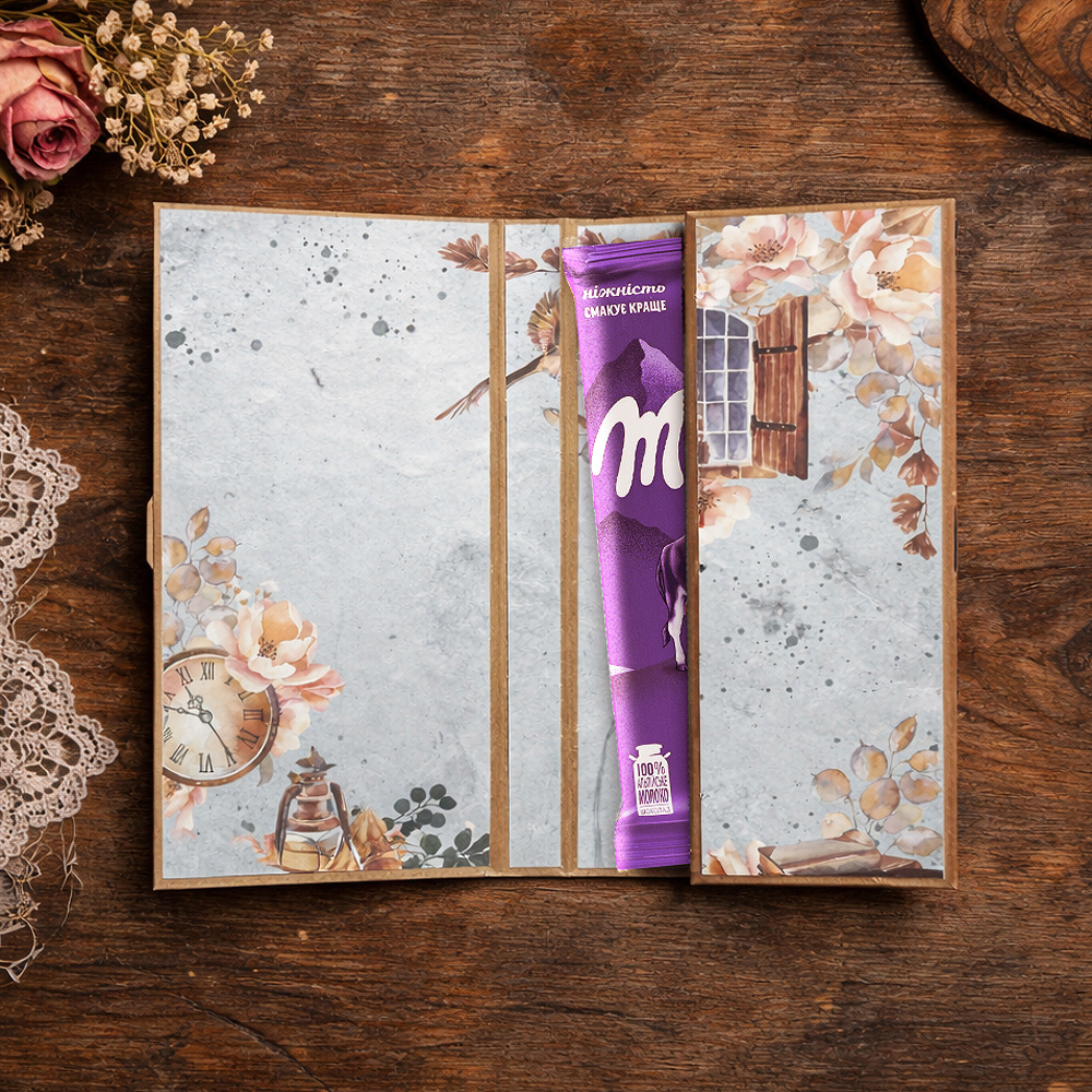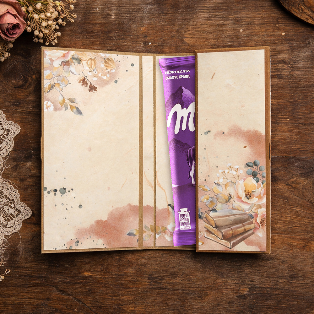 Набор в нежном романтичном стиле поможет создать красивую и оригинальную упаковку для шоколада своими руками. Дизайн сочетает уютные домашние элементы, тёплые иллюстрации и деликатные декоративные детали, наполняя работу лёгкостью, гармонией и мечтательной атмосферой.