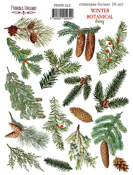 Набор наклеек (стикеров) 16шт Winter botanical diary #232