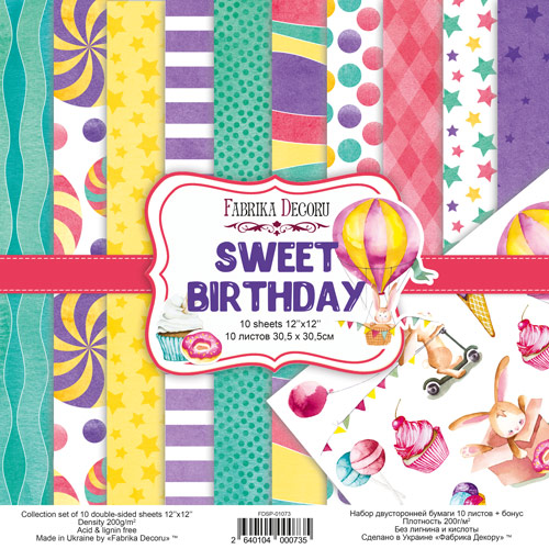 "Sweet Birthday" - набор двусторонней бумаги 30,5см х 30,5см (12"x12"), плотностью 200г/м.