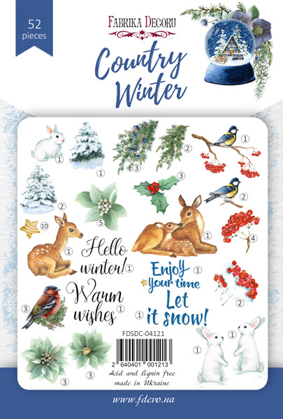 Набор высечек, коллекция Country winter, 52 шт — идеально подойдет, если Вы хотите украсить альбом или открытку, сделать многослойную композицию на холсте или конверте, эффектно оформить подарок. Набор содержит элементы разных размеров и формы, от маленьких одиночных до объединенных в группу изображений. Это позволяет со вкусом оформить любые творческие проекты. Высечки можно фиксировать на клеи Универсальный, Профессиональный переплет, а чтобы придать Вашей работе дополнительный объем, фигурки можно крепить на двусторонний вспененный скотч.