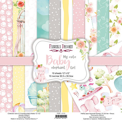 "My cute Baby elephant girl"- набор двусторонней бумаги для скрапбукинга 30,5см х 30,5см (12"x12"),