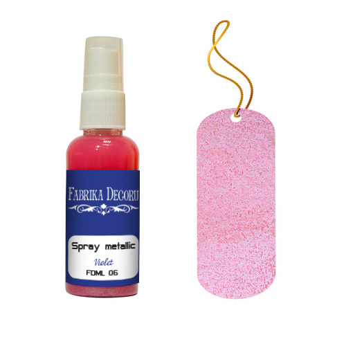 Краска «Спрей металлик» на водной основе состоит из чернил, металлизированного пигмента, специального клеевого вещества и очищенной воды. «Спрей металлик» не токсичен, без кислоты, предназначен для работы на бумаге, картоне, ДВП, дереве, ткани и любых поверхностях, покрытых грунтом. В палитре мягкие и яркие природные цвета, флакон, имитирующий аэрограф. После высыхания образует матовую поверхность с металлическим блеском. Цвета между собой смешиваются, образуя новые оттенки.