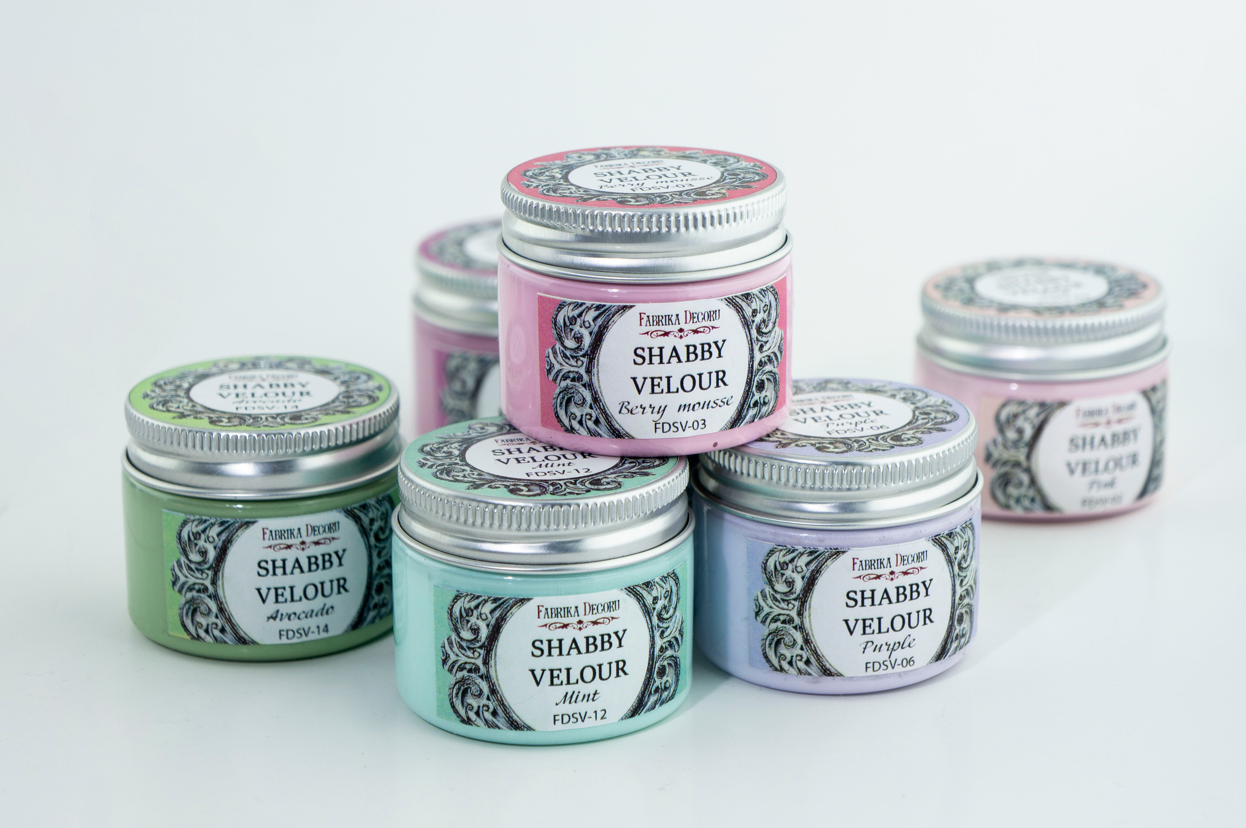 Shabby velour paint Mint ist die wasserdispergierbare ultramatte Acrylfarbe, die eine Flockbeschichtung erzeugt und speziell entwickelt wurde, um mit Vintage- und Shabby-Chic-Techniken zu arbeiten und eine leicht abgenutzte Oberfläche zu schaffen. Es erfordert keine vorherige Vorbereitung der Oberfläche durch Grundierung oder Behandlung. Die Farbe hat hohe Haftungseigenschaften auf allen Oberflächen, einschließlich glänzender. Nach dem Trocknen kann die lackierte Oberfläche mit Mattlack überzogen werden.