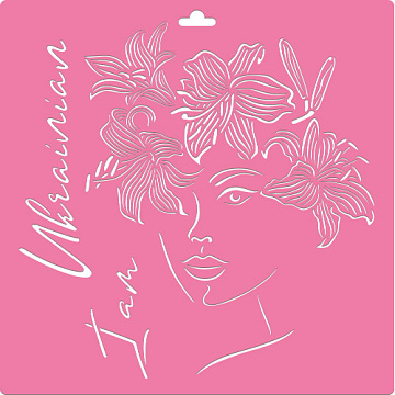 Stencil for decoration XL size (30*30cm), Portrait of a Ukrainian woman with lilies UA #199 used as
