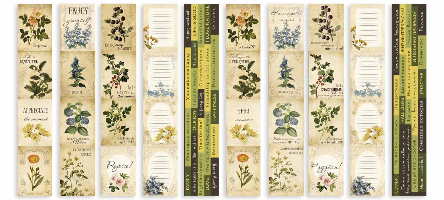 Zestaw pasków kolekcji "Botany summer" z obrazkami do wycinania i dekorowania.