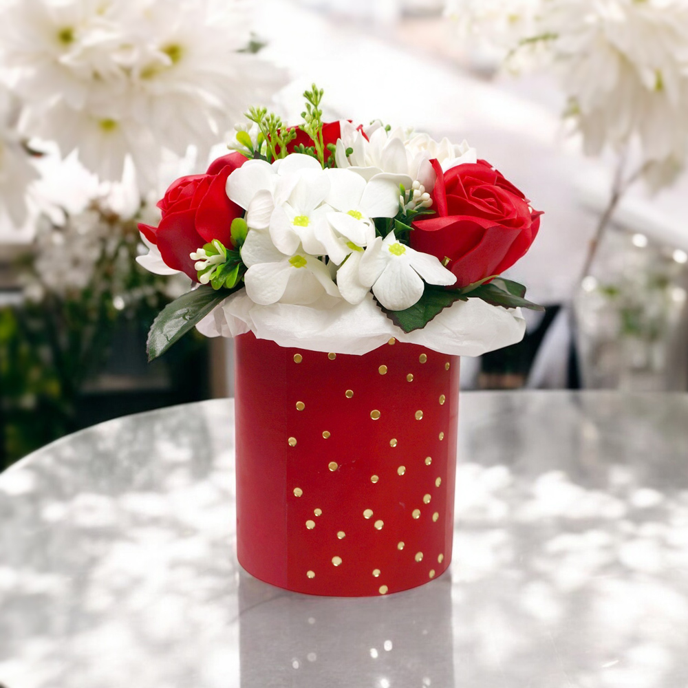 Композиція з мильних квітів «Есмеральда» поєднує в собі витонченість і гармонію. Поєднання гортензій, хризантем і троянд із реалістичними пелюстками створює елегантний акцент для дому, офісу або як стильний подарунок.