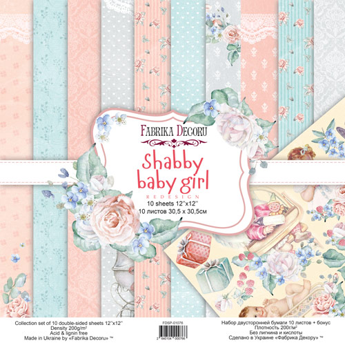 "Shabby baby girl redesign" - набір двостороннього паперу для скрапбукінгу, розміром 30,5с