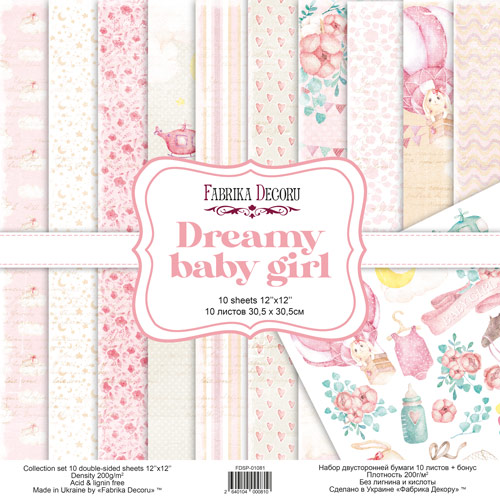 "Dreamy baby girl" - набір двостороннього паперу для скрапбукінгу, розміром 30,5см х 30,5с